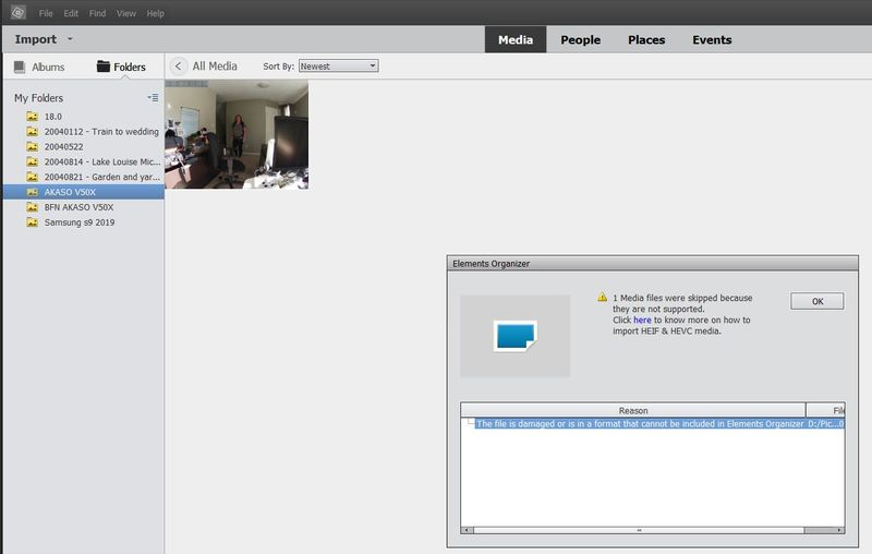 Charles, being a smart guy, set up our AKASO recording settings in H.264. This is easier to use on my old computer. H.265 is smaller but older computers may have a hard time reading it. If you bought your computer within the last four years, it should have H.265 built-in. Otherwise, you might want to stick with H.264.