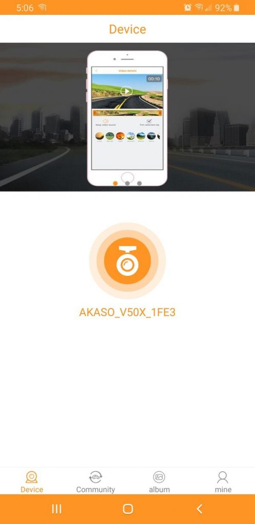 The RoadCam application allows you to download videos and photos from your AKASO and take photos. This is particularly useful if your AKASO is on a tripod and you want to use your phone to set up a video or photograph.