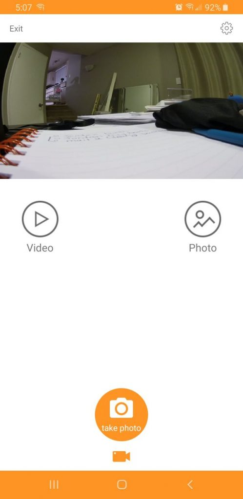 The RoadCam application allows you to take photos or videos. The app is a little buggy. When I recorded a video the RoadCam view never changed when I moved the camera. It was hard to tell what I was recording.