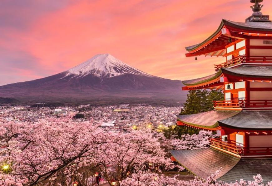 Cherry blossoms are best seen in Fuji Five Lakes from mid-March to early May.