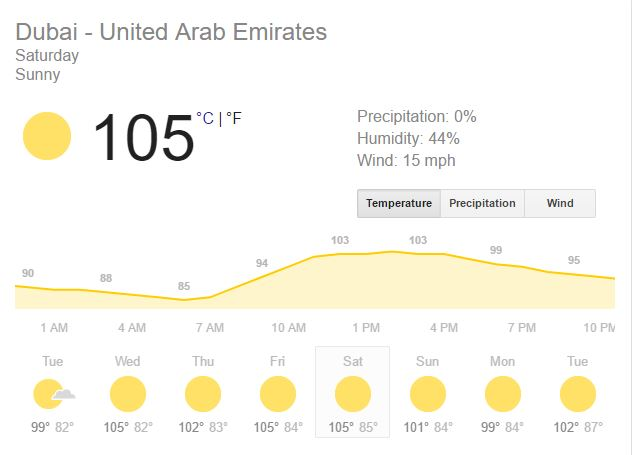 We checked the temperatures when we first began to consider visiting Dubai. We’d heard that it could get hot. It turns out that this is a slight understatement. Temperatures of around 41 degC are not uncommon. Wow!