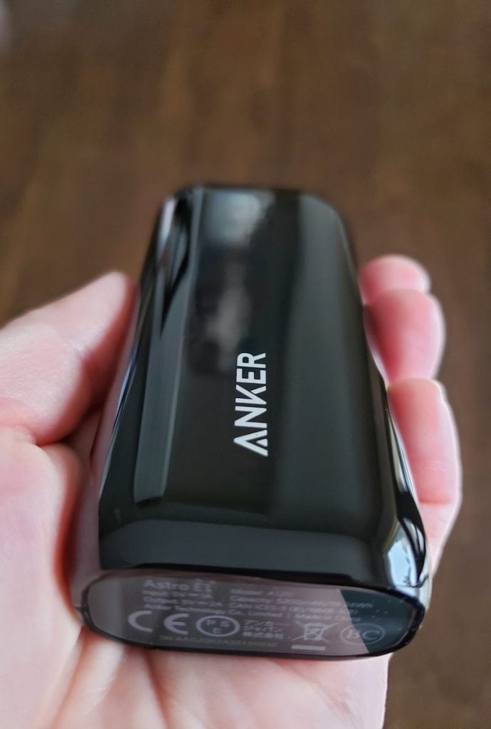 The Anker Astro E1 is a small, lightweight device that fits in my palm. It will charge my phone from zero to 100 a few time.