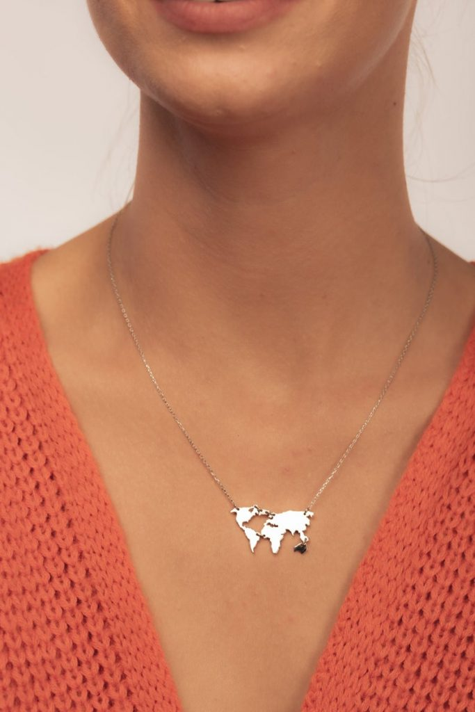 Etsy offers a wide range of unique and adorable travel jewelry, such as this world map pendant.