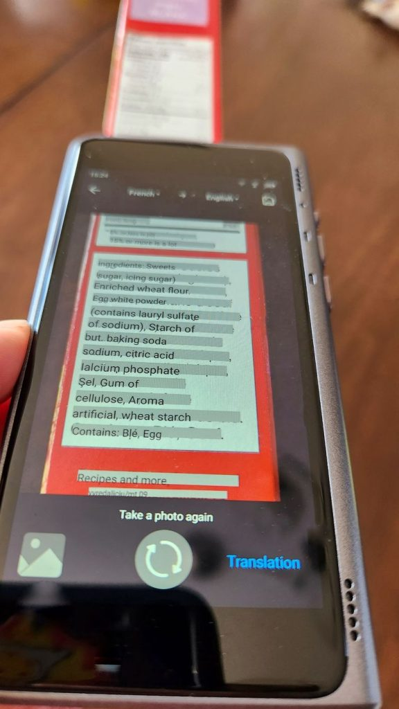 The photo translation was also a success. We used this on the road for menus, road signs, and maps. Photo translation is my favorite way to translate ingredient labels for vegetarians.